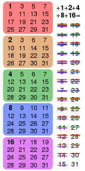 In computer graphics, when a given image is intended to be placed over a background, the transparent areas can be specified through a binary mask.[1] This way, for each intended image there are actually two bitmaps: the actual image, in which the unused areas are given a pixel value with all bits set to 0s, and an additional mask, in which the correspondent image areas are given a pixel value of all bits set to 0s and the surrounding areas a value of all bits set to 1s. In the sample at right, black pixels have the all-zero bits and white pixels have the all-one bits.