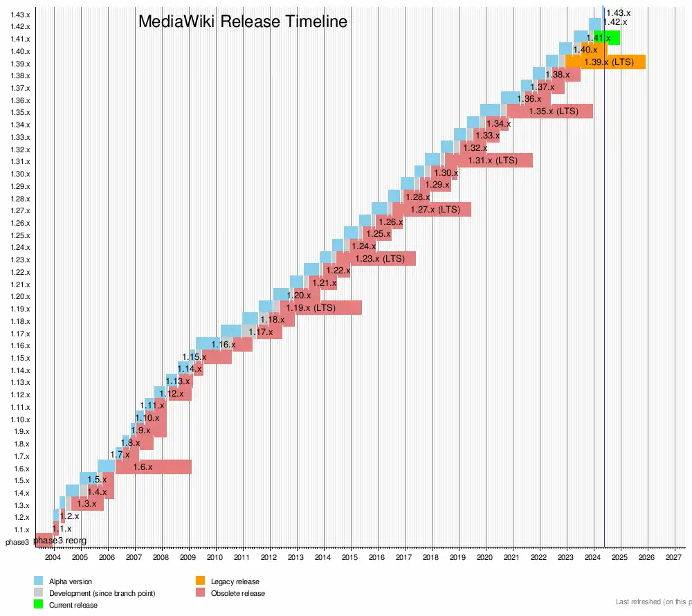 - MediaWiki version lifecycle on mediawiki.org