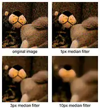 - ↑ Huang, Thomas S.; Yang, George J.; Tang, Gregory Y. (February 1979). "A fast two-dimensional median filtering algorithm" (PDF). IEEE Transactions on Acoustics, Speech, and Signal Processing. 27 (1): 13–18. doi:10.1109/TASSP.1979.1163188.