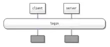 - Control flow: horizontal arrow with the 'call' prefix, dashed arrow for reply symbol, method and suspension symbols in between.