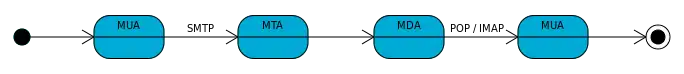 An MTA works in the background, while the user usually interacts directly with a mail user agent. One may distinguish initial submission as first passing through an MSA—port 465 (or, for legacy reasons, optionally port 587) is used for communication between an MUA and an MSA, while port 25 is used for communication between MTAs, or from an MSA to an MTA.[5] this distinction is clarified in RFC 8314.