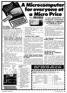 Advertised as "a microcomputer for everyone at a micro price ... a complete computer for $149.00 for 1K [RAM] kit" with optional 2K RAM,[4][5] it was an unlicensed clone of the Sinclair ZX80 and had an identical, yet obfuscated copy of the ROM by means of a byteswap.[6][7] Some time later, between 1980 and 1981, MicroAce settled with Sinclair and licensed the ROM of the ZX81.[8][9]