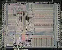 The MicroVAX 78132 contains 32,141 transistors on a die measuring 8.4 mm by 6.6 mm (55.44 mm2). It was fabricated in DEC's ZMOS process, a 3.0 µm NMOS process with two layers of aluminum interconnect; and is packaged in a 68-pin surface-mounted leaded chip carrier.[2]