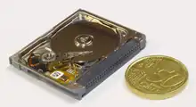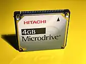 The Microdrive is a type of miniature, 1-inch hard disk produced by IBM and Hitachi. These rotational media storage devices were designed to fit in CompactFlash (CF) Type II slots.