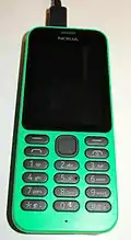 Series 30+ is a software platform and user interface that was used by Microsoft Mobile for its entry-level mobile devices.[161] The first Series 30+ device was the Nokia 130,[162][163] which had basic features such as a flashlight, FM radio, USB charging, video playback from microSD cards, and Bluetooth and USB connectivity, but no internet access. The Nokia 215, released in 2014, allowed users to browse the internet with Bing and MSN Weather and came pre-installed with Opera Mini.[164] Most S30+ devices did not come with Wi-Fi and were marketed for developing nations, with the Nokia 105 making up the majority of sales.[165] In June 2015, Microsoft further expanded the line of Nokia-branded feature phones with the Nokia 105 aimed specifically at developing nations, and named after an earlier model with the same target audience,[166] but marketed also towards present smartphone owners, being "perfect for those looking to own their first mobile phone or for those needing a reliable back-up phone for travel and fun."[167] In the third quarter of 2015, the Nokia 222 was released. It featured a larger, 2.4-inch screen.[168] In December 2015, the Nokia 230 was the last Nokia phone from Microsoft. It had an aluminium body, a 2 megapixel front-facing camera, and a dedicated selfie camera key.[169] Series 30+ still lives today as part of HMD Global.