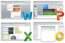 ![]() Microsoft Office for Mac 2011 applications shown on Mac OS X Snow Leopard | |