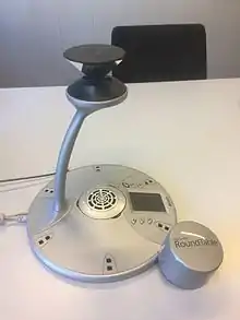 Microsoft RoundTable was a videoconferencing device with a 360-degree camera that was designed to work with Microsoft Office Communications Server 2007 or Microsoft Office Live Meeting. RoundTable provided remote meeting participants with panoramic video of everyone sitting around the conference table. In addition, RoundTable contained active speaker detection technology that provides high-resolution video of the active speaker in a meeting, and tracked the flow of conversation in real time, switching between different meeting participants as they speak.