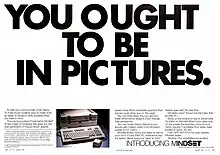 The Mindset is an Intel 80186-based MS-DOS personal computer.[1] It was developed by the Mindset Corporation and released in spring 1984. Unlike other IBM PC compatibles of the time, it has custom graphics hardware supporting a 320×200 resolution with 16 simultaneous colors (chosen from a 512-shade palette)[1] and hardware-accelerated drawing capabilities, including a blitter,[2] allowing it to update the screen 50 times as fast as an IBM standard color graphics adapter.[3] The basic unit was priced at US$1,798 (equivalent to $5,270 in 2023).[1] It is conceptually similar to the more successful Amiga released over a year later. Key engineers of both the Amiga and Mindset were ex-Atari, Inc. employees.
