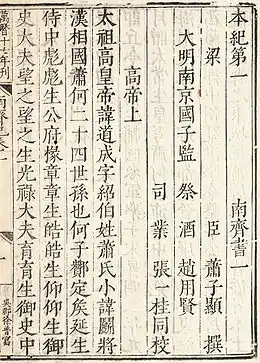 When Song lost control of northern China to the Jin (金) dynasty, its capital was moved to Lin'an (modern Hangzhou), where there was a revival of printing, especially literature from Tang left in what was conquered by the Jin dynasty. Many publishers were established in Lin'an, including Chén zhái shūjí pù (陳宅書籍鋪) established by Chen Qi (Chinese: 陳起),[1] from which publications used a distinct style of regular script with orderly, straight strokes. Modern typefaces of this style are classified as imitation Song typefaces (simplified Chinese: 仿宋体; traditional Chinese: 仿宋體). In the Ming dynasty, the straightening of strokes in a reprint of a publication from Lin'an started a shift to what became the basis of the Ming style.[1]