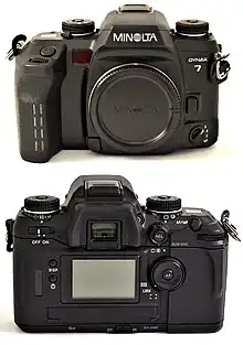 Minolta made one last attempt to enter the amateur and professional market with the Maxxum (Dynax) 9 in 1998, followed by the Maxxum 7 in 2000, which used a full LCD readout on the rear of the camera. Though well received by the photographic press, the 7 and 9 did not sell to expectations or achieve any significant breakthrough with their intended customer base, who had largely gravitated to the Canon or Nikon brands. All of these cameras were eventually discontinued in favor of the less-expensive Maxxum 50 and 70, which were sold under the Minolta name until 2006, when Konica Minolta ceased production of all film cameras.[2]