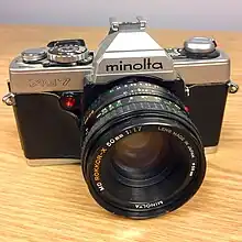 Minolta Co., Ltd. (ミノルタ, Minoruta) was a Japanese manufacturer of cameras, camera accessories, photocopiers, fax machines, and laser printers. Minolta Co., Ltd., which is also known simply as Minolta, was founded in Osaka, Japan, in 1928 as Nichi-Doku Shashinki Shōten (日独写真機商店, meaning Japanese-German camera shop). It made the first integrated autofocus 35 mm SLR camera system. In 1931, the company adopted its final name, an acronym for "Mechanism, Instruments, Optics, and Lenses by Tashima".[1]