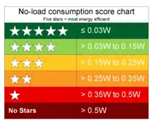 Various initiatives, such as the EU Common External Power Supply have been announced to standardize the interface to the charger, and to promote energy efficiency of mains-operated chargers. A star rating system is promoted by some manufacturers, where the most efficient chargers consume less than 0.03 watts and obtain a five-star rating.
