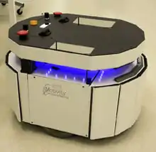 | 2007 | In the DARPA Urban Grand Challenge, six vehicles autonomously complete a complex course involving manned vehicles and obstacles.[24] Kiva Systems robots proliferate in distribution operations; these automated shelving units sort themselves according to the popularity of their contents. The Tug becomes a popular means for hospitals to move large cabinets of stock from place to place, while the Speci-Minder[25] with Motivity begins carrying blood and other patient samples from nurses' stations to various labs. Seekur, the first widely available, non-military outdoor service robot, pulls a 3-ton vehicle across a parking lot,[26] drives autonomously indoors and begins learning how to navigate itself outside. Meanwhile, PatrolBot learns to follow people and detect doors that are ajar. |