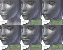 When used for facial animation, these morph target are often referred to as "key poses". The interpolations between key poses when an animation is being rendered, are typically small and simple transformations of movement, rotation, and scale performed by the 3D software.[1]