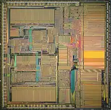 The die contained 1.3 million transistors and measured 15 mm by 15 mm (225 mm2). It was fabricated in a 1 µm complementary metal–oxide–semiconductor (CMOS) process. The process has three levels of aluminium interconnect and an effective channel length (the distance between the source and drain contacts of the MOSFET transistors) of 0.8 µm. The MC88110 was designed to be shrunk to a 0.8 µm process with an effective channel length of 0.65 µm without modification.