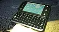 - It has a full QWERTY keypad with a "reverse flip" design. When the device is closed and the screen is visible to the user, the reverse side is the keypad itself. Opening the device causes the screen to flip so that it rests above the keypad.