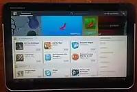 The Motorola Xoom is an Android-based tablet computer by Motorola, introduced at CES 2011 on January 5, 2011. It was the first tablet to be sold with Android 3.0 Honeycomb. The Verizon branded Xoom was the first tablet to run Android 3.1.[6] The Motorola Xoom went through the FCC on February 10, 2011[7] only 14 days before release. The 3G version was released on February 24, 2011, and the Wi-Fi version was released March 27, 2011. It was announced concurrently with three other products: the Motorola Atrix, the Motorola Droid Bionic, and the Motorola Cliq 2.[8] CNET named it the "Best of the CES" 2011.[9]