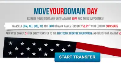 Move Your Domain Day, or MoveYourDomainDay, was an annual observance encouraging owners of domain names to transfer their domain registration away from registrars that supported the Stop Online Piracy Act (SOPA). It was first held on 29 December 2011, the idea coming from a post on Reddit as a protest against prominent registrar GoDaddy's support for SOPA.[1] In 2012, rival registrar Namecheap began an initiative to make Move Your Domain Day an annual event.[2] Subsequent events were held on 22 January 2013, 5 February 2014, 27 January 2015, 2 February 2016, and 6 March 2018. The Electronic Frontier Foundation, Reddit, and domain registrars Name.com and Hover have also participated.[3] Namecheap has defined the initiative as "an annual protest and a commemoration of sorts that will continue to shine a light on the issue of a free and open internet".[4] There have been no major Move Your Domain Day events since 2018.