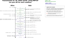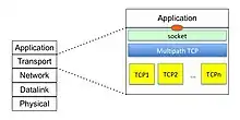 In order to facilitate its deployment, Multipath TCP presents the same socket interface as TCP. This implies that any standard TCP application can be used above Multipath TCP while in fact spreading data across several subflows.[8]
