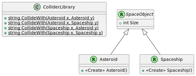 public static string CollideWith(Asteroid x, Spaceship y) => "a/s";