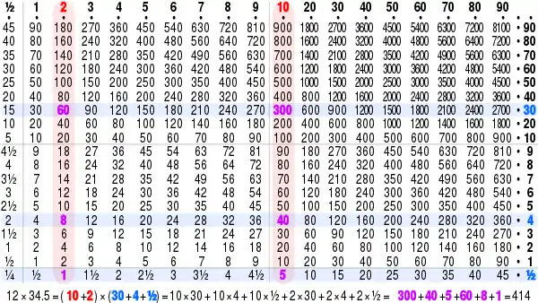The illustration below shows a table up to 12 × 12, which is a size commonly used nowadays in English-world schools.