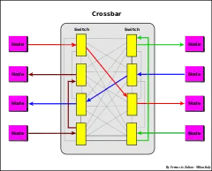 A cc–NUMA system is a cluster of SMP systems – each called a "node", which can have a single processor, a multi-core processor, or a mix of the two, of one or other kinds of architecture – connected via a high-speed "connection network" that can be a "link" that can be a single or double-reverse ring, or multi-ring, point-to-point connections,[6][7] or a mix of these (e.g. IBM Power Systems[6][8]), bus interconnection (e.g. NUMAq[9]), "crossbar", "segmented bus" (NUMA Bull HN ISI ex Honeywell,[10]) "mesh router", etc.