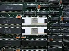 The High-Performance Graphics Display Controller 7220 (commonly μPD7220 or NEC 7220) is a video display controller and a Graphics processing unit, capable of drawing lines, circles, arcs, and character graphics to a bit-mapped display. It was developed by Nippon Electric Company (NEC) in order to support the Kanji character set efficiently, which explains why the APC computer line had superior graphics compared to competing models. The chip was first used in the NEC N5200 and in later computers, such as the NEC PC-9801, APC II and APC III, the NECcomputer, the optional graphics module for the DEC Rainbow, the NCR Decision Mate V, the Tulip System-1, and the Epson QX-10.[1]
