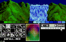 NEOchrome is an early color bitmap graphics editor for the Atari ST.[3][6][8] It was written by Dave Staugas, a programmer at Atari Corporation and co-author of the ST's operating system.[9] NEOchrome supports hardware-supported color cycling to give the impression of animation. A color cycling waterfall, created with NEOchrome, was one of the iconic images of the early Atari ST.[10][11]