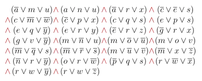 - For example, simply assigning true to each variable renders the 18th conjunct (and hence the complete formula) false.