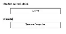 Process blocks: the process block represents the simplest of steps and requires no analysis. When a process block is encountered, the action inside the block is performed and we move onto the next block.