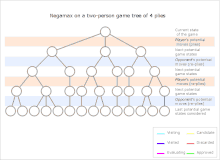 Negamax search is a variant form of minimax search that relies on the zero-sum property of a two-player game.