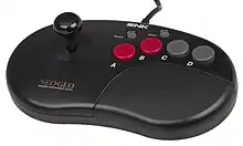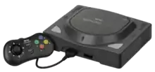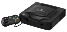 The Neo Geo CD (Japanese: ネオジオCD, Hepburn: Neo Jio Shī Dī) is the second home video game console of SNK Corporation's Neo Geo family, released on September 9, 1994, four years after its cartridge-based equivalent. This is the same platform, converted to the cheaper CD format retailing at $49 to 79 per title, compared to the $300 cartridges.[1] The system was originally priced at US$399,[2] or £399. The system can also play Audio CDs. All three versions of the system have no region lock, but they are region aware, and some games will display English or Japanese depending on the console's region setting. The Neo Geo CD was launched with a bundled control pad instead of a joystick like the AES version. A newly designed joystick was released alongside the Neo Geo CD, and the system was compatible with controllers from the AES.