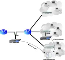 NetFlow is a feature that was introduced on Cisco routers around 1996 that provides the ability to collect IP network traffic as it enters or exits an interface. By analyzing the data provided by NetFlow, a network administrator can determine things such as the source and destination of traffic, class of service, and the causes of congestion. A typical flow monitoring setup (using NetFlow) consists of three main components:[1]