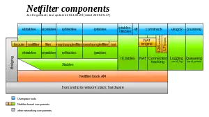 Netfilter represents a set of hooks inside the Linux kernel, allowing specific kernel modules to register callback functions with the kernel's networking stack. Those functions, usually applied to the traffic in the form of filtering and modification rules, are called for every packet that traverses the respective hook within the networking stack.[2]