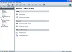 Netscape Mail and Newsgroups, commonly known as just Netscape Mail, was an email and news client produced by Netscape Communications Corporation as part of the Netscape series of suites between versions 2.0 to 7.2. In the 2.x and 3.x series, it was bundled with the web browser. In the 4.x series, it was rewritten as two separate programs known as Netscape Messenger and Netscape Collabra.
