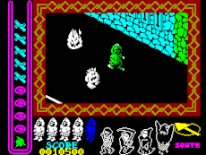 The gameplay was also praised by reviewers. Bourne opined that the game was well-paced in similar vein to arcade-style games, but noted "a sense of déjà vu" with the game's concept, stating that the developer's games were starting to "wear thin".[1] The reviewer from Computer and Video Games appreciated Nightshade's "nice touches", summarising that it was an instant classic from Ultimate Play the Game.[2] Irving criticised the lack of instructions or hints that came with the game, and stated that Nightshade did not set new standards with programming, unlike Knight Lore and Alien 8, but admitted that the game was still another "technically brilliant" game.[3] The reviewer from Computer Gamer enjoyed the wide range of gameplay elements, stating that it was enough to hold their attention for hours.[9] A reviewer from Home Computing Weekly stated that the gameplay was not as addictive as Knight Lore or Alien 8 due to the game's lack of obstacles.[10] Jenkins praised the game's use of its new engine, Filmation II, stating that it was ahead of "everything else" on the ZX Spectrum.[11]
