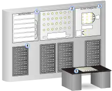 The player would sit at the stand and press the buttons to make their moves, while one panel of lights showed the state of the game, and another showed the computer's calculations during its move.[3] The computer could be set to make its calculations at various speeds, slowing down so that the demonstrator could describe exactly what the computer was doing in real time.[5] A visual guide attached to the Nimrod explained what the computer was doing during its turn, as well as showing possible game states and how they would be represented by the lights.[3] Signs stating which player's turn it was and whether one or the other had won would light up as appropriate during gameplay.[5]
