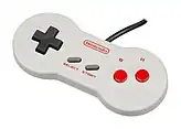 The game controller for both the NES and the Famicom has an oblong brick-like design with a simple four button layout: two round buttons labeled "A" and "B", a "START" button, and a "SELECT" button.[115] Additionally, the controllers use the cross-shaped D-pad, designed by Nintendo employee Gunpei Yokoi for Nintendo Game & Watch systems, to replace the bulkier joysticks on controllers of earlier gaming consoles.[31]: 279