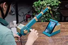 In January 2018, Nintendo announced Nintendo Labo, a child-oriented platform that combines games coupled with do-it-yourself cardboard projects that attach or wrap around the Switch Console and Joy-Con, effectively creating toys around the Switch hardware to interact with games. These cardboard units, which may also include string, rubber bands, and other pieces, are referred to as Toy-Con. The game software provides instructions for the Toy-Con construction and provides the interface to control the Toy-Con. Such examples given include a remote-controlled "car", where the two Joy-Con attach to the car and their vibration feedback provide the motion for the car, controlled from the Switch, a fishing rod where the Joy-Con are part of the reel and handle of the rod and their motion controls used to simulate the act of fishing in the mini-game, and a small toy piano.[124]