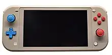 The Switch Lite launched on September 20, 2019, in three colors: yellow, grey, and turquoise. The system was promoted alongside The Legend of Zelda: Link's Awakening, a remake of the 1993 Game Boy game. A special Pokémon Sword and Pokémon Shield branded version of the Switch Lite, themed around the Pokémon Zacian and Zamazenta, launched on November 8, 2019, a week before the game's release.[84] A coral color was released on March 20, 2020, in Japan, and on April 3 in the rest of the world.[85] A blue color released on May 7, 2021, in Europe, and on May 21 in the rest of the world.[86] A special Pokémon Dialga and Palkia limited edition was released on November 5, 2021, 14 days before the release of Pokémon Brilliant Diamond and Shining Pearl. This special edition pays homage to the Nintendo DS Lite Dialga and Palkia edition.[87]