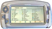 The Nokia 7710 is a mobile phone developed by Nokia and announced on 2 November 2004.[1] It was the first Nokia device with a touchscreen (4 years ahead of Nokia 5800 XpressMusic), and first Nokia branded device with 2:1 aspect ratio display (14 years ahead of Nokia 7 Plus).[2][3] The 7710 is based on the Nokia 7700 which was never released. It is Nokia's only smartphone to run the Series 90 interface atop Symbian OS v7.0s.