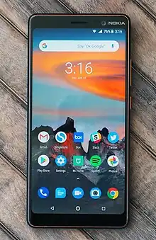 The Nokia 7 Plus is a Nokia-branded upper-mid-range smartphone running the Android operating system.[7] It was announced on 25 February 2018, along with four other Nokia-branded phones.[8]