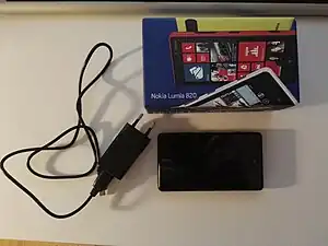 The Nokia Lumia 820 is a smartphone[4] designed, developed and marketed by Nokia. It is the successor to the Lumia 800 and is one of the first Nokia phones to implement Windows Phone 8 alongside the Nokia Lumia 920. Although sharing a similar appearance with the Lumia 800, the Lumia 820 is a major overhaul over its predecessor, sporting a 4.3 inches (110 mm) diagonal OLED display with scratch resistant glass, though lacking Gorilla Glass protection, 1.5 GHz dual-core processor, and an 8.7-megapixel camera.[5][6] The phone will come with LTE connectivity and a wireless-charging option.[7] The 820 is the first Nokia Windows Phone OS based smartphone to embed a microSD card slot.[8]