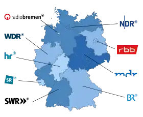 Norddeutscher Rundfunk (pronounced [ˈnɔʁtˌdɔʏtʃɐ ˈʁʊntfʊŋk]; "Northern German Broadcasting"), commonly shortened to NDR (pronounced [ˌɛndeːˈʔɛʁ] ⓘ), is a public radio and television broadcaster, based in Hamburg. In addition to the city-state of Hamburg, NDR broadcasts for the German states of Lower Saxony, Mecklenburg-Vorpommern and Schleswig-Holstein. NDR is a member of the ARD organisation.