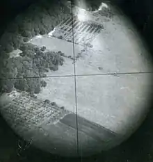 Norden's version of the system was very similar to the Army's Estoppey D-4 of the same era, differing largely in the physical details of the actual sights. The D-4 used thin wires as the sights, while Norden's would use the small telescope of the Mark III-A. To use the system, the bombardier looked up the expected time it would take for the bombs to fall from the current altitude. This time was set into a countdown stopwatch, and the sights were set to the angle that the bombs would fall if there was no wind. The bombardier waited for the target to line up with a crosshair in the telescope. When it did, the timer was started, and the bombardier rotated the telescope around its vertical axis to track the target as they flew toward it. This movement was linked to a second crosshair through a gearing system. The bombardier continued moving the telescope until the timer ran out. The second crosshair was now at the correct aiming angle, or range angle, after accounting for any difference between groundspeed and airspeed. The bombardier then waited for the target to pass through the second crosshair to time the drop.[6]