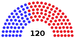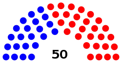 The General Assembly has 170 elected members, with 120 members of the North Carolina House of Representatives and 50 members of the North Carolina Senate.[23] Each represents a district.[2] Each house has the sole power to judge the election and qualification of its own respective members.[24] Legislators' are elected biennially in even-numbered years. Their terms of office begin at the start of the January following the year of their election.[25] All legislators swear a state constitutionally-prescribed oath of office.[26] In the event of the vacancy of a seat, the governor is constitutionally obligated to appoint a person nominated by the previous incumbent's political party's respective district executive committee to fill the seat.[27]