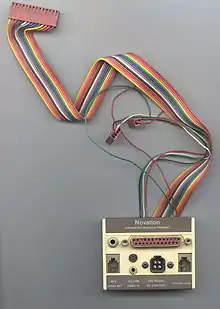 Novation also released a full-duplex Bell 212-compatible expansion board known as the Novation 212 Expansion Card, which plugged into the Apple II motherboard as well as an existing Apple-CAT II via a ribbon cable. The card was very expensive and rarely seen. Novation also created an 'Expansion Pack' or external breakout box that would connect to the large pin header on the top middle of the card. This item allowed easy external access to the built-in serial port, phone line and handset connections. Due to its cost at the time, the item is very rare.