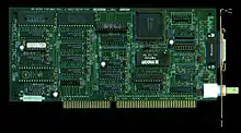 Starting in 1987, Novell began selling its own Ethernet-based network adapter cards.[40] These included the 8-bit NE1000, and then in 1988, the 16-bit NE2000.[41] They priced them lower than cards from competitors such as 3Com, whose card Novell had previously been distributing.[40] By 1989, Novell's cards were being sold at a rate of 20,000 per month, aggressively expanding Novell's market presence.[42] At that point, Novell transferred the NE1000/NE2000 business to Anthem Electronics, the firm that had actually been making them, but the cards remained branded as Novell products.[42]