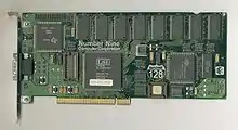 Number Nine Visual Technology Corporation was a manufacturer of video graphics chips and cards from 1982 to 1999. Number Nine developed the first 128-bit graphics processor (the Imagine 128), as well as the first 256-color (8-bit) and 16.8 million color (24-bit) cards.[1]