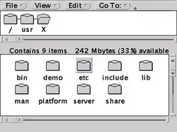 OPEN LOOK is distinguished by its obround buttons, triangle glyphs to indicate pull-down and pull-right menus, and "pushpins" which allowed the user to make dialog boxes and palettes stay visible. The overall philosophy was to provide a clean, simple and uncluttered interface, so that the user's focus would be on the application rather than the interface.[1] In fact, the original OPEN LOOK design was black and white only; a "three-dimensional" look and feel with shading was added later, in response to the 3-D style effects in Motif.